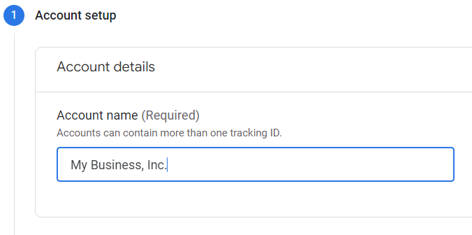 Provide a name for your Analytics account. We recommend using the name of your business.