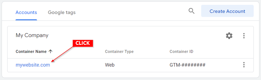 Select the container you’d like to share by clicking on your website’s name\URL