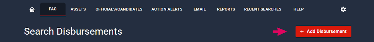 In order to add disbursements, select the PAC menu and select Disbursements.