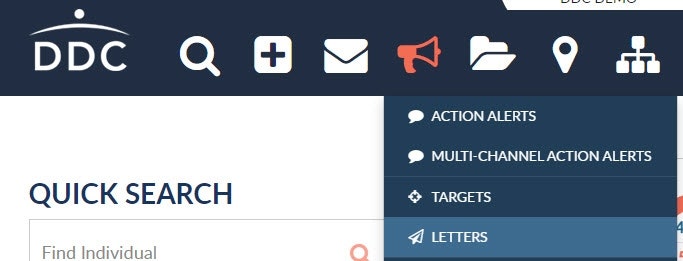 To begin creating a letter, navigate to the Alerts main menu item and select the Letters submenu.